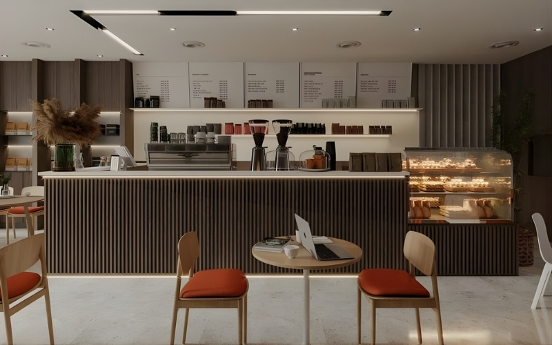 Quầy pha chế chữ L là lựa chọn tối ưu cho các mô hình quán cà phê nhờ khả năng tận dụng diện tích, tổ chức vận hành khoa học và dễ dàng tùy biến theo từng concept kinh doanh. Nếu anh/chị đang trong giai đoạn setup và cần một phương án phù hợp với mặt bằng của mình, có thể tham khảo thêm các giải pháp thiết kế từ 5E DESIGN để có định hướng rõ ràng hơn.